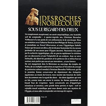 Un tempérament exceptionnel, un savoir encyclopédique, une insatiable soif de comprendre : à quatre-vingt-dix ans, Christiane Desroches Noblecourt n'a rien perdu de son enthousiasme ni de son énergie. Dans ces entretiens avec Catherine David et Jean-Philippe de Tonnac, écrivains et journalistes au Nouvel Observateur, et avec l'égyptologue Isabelle Franco qui fut aussi son élève, elle révèle pour la première fois les raisons profondes de son amour pour l'Égypte ancienne. Passionnée très jeune par la recherche égyptologique, elle en gravira rapidement les échelons par ses découvertes et par l'originalité de ses analyses. Avec sa verve habituelle, elle décrit les grandeurs et les petitesses de ce milieu haut en couleur, mais parfois peu ouvert aux innovations... et aux femmes. De son engagement dans la Résistance au sauvetage des temples de Nubie, de ses multiples explorations et expertises à l'invention du concept de patrimoine culturel mondial, Christiane Desroches Noblecourt, qui fut la première femme conservateur du département des Antiquités égyptiennes au musée du Louvre, nous raconte une traversée du siècle hors du commun sous le regard des dieux - des dieux égyptiens qui sont en fait, comme toute son oeuvre le montre, les formes permettant au Grand Tout de s'exprimer. Après soixante-dix ans d'égyptologie minutieuse et novatrice, cette grande dame persiste et signe : seul un véritable travail scientifique peut nous donner accès aux mystères de l'Égypte, et nous aider à comprendre son message de sagesse.